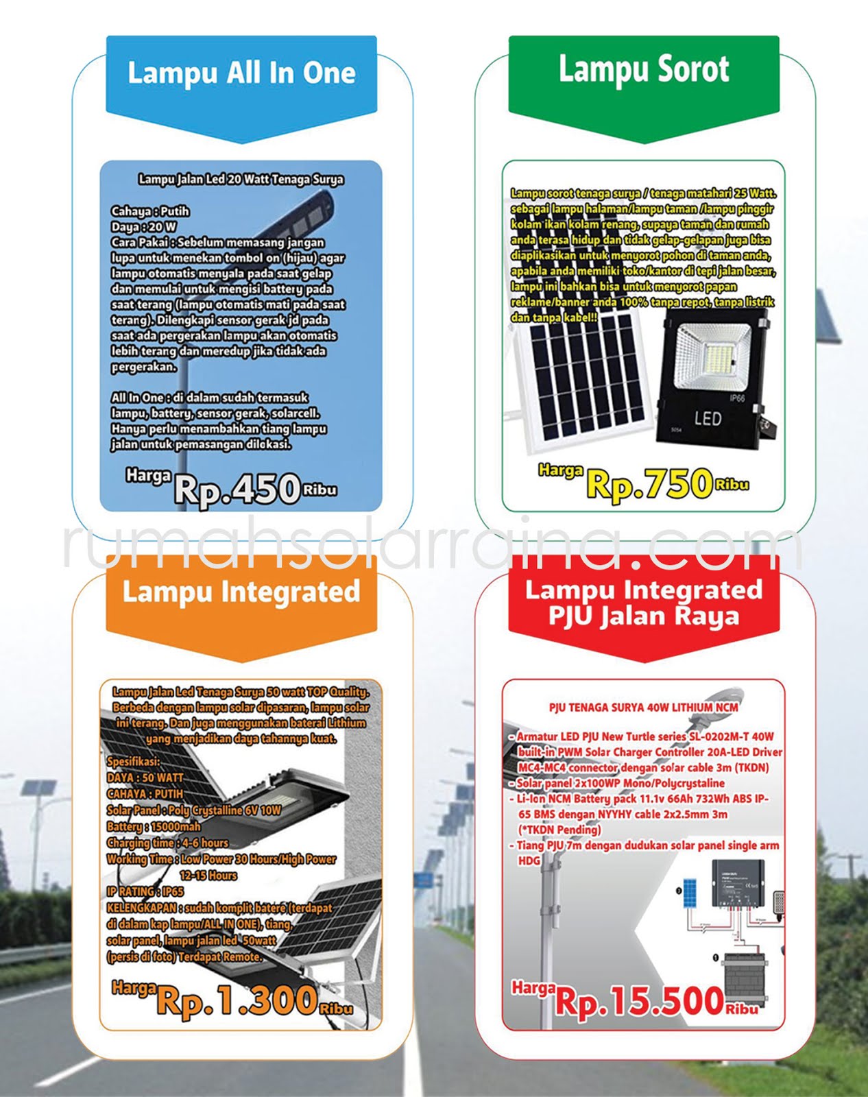 yang memanfaatkan tenaga surya seperti lampu penerangan luar atau Solar